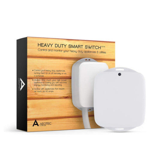 The Aeotec Heavy Duty Smart Switch brings remote control to your heavy-duty 240V appliances rated up to 40A including refrigerators, electric heaters, water heaters, pool pumps and electric car charging devices. -