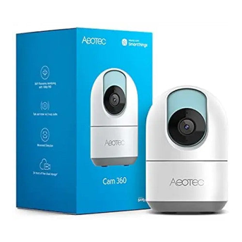 AEO-CM-AEOCAMUS-WTYou can quickly get a 360-degree view of your room with the Aeotec Cam 360. Show a thorough overview of what's happening at home, day or night. Utilize the SmartThings App to communicate via 2-way audio and a built-in microphone. Get notifications when there is motion or sound. Create a customized detection zone to focus more on certain areas for unforeseen behavior. Automate scenarios and procedures with compatible smart devices using the SmartThings App.