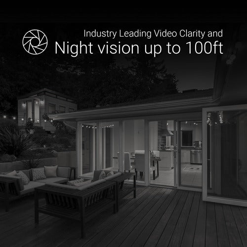 Full HD 1080p video, microphone, and IR night vision of up to 100ft allowing you to see what is happening, even in the dark. -